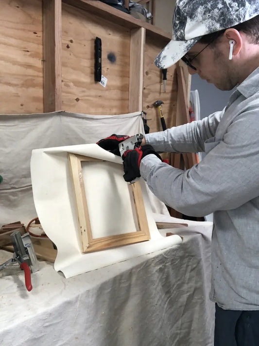 Made locally in Southern California, our vendor uses the giclee technique of embedding pigment into the canvas based off a high-resolution image of the original painting. Once dry, a thin varnish is applied. After quality inspection, the giclee print is taken to a framing shop where a custom wooden frame is built and the giclee print is hand stretched over.